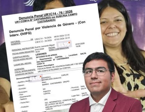 El concejal del bloque La Libertad Avanza en Salta, Carlos Maximiliano Casasola, fue denunciado penalmente por su expareja por presuntas lesiones agravadas y violencia de género. La presentación judicial quedó radicada en la Fiscalía Penal de Violencia Familiar y de Género Nº 1, que inició la investigación de los hechos.